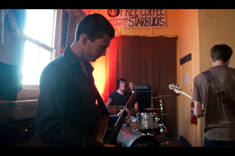 Excellent instrumentalist trio from the garden city formed by Matt Craw (guitar), James Musgrave (bass), and Jared Kelly (drums) in early 2005. Taking cues from a variety of informed directions, the group were prolific features of the local live scene, and attached themselves to both R18 and all-age crowds with varying success. Playing an involved instrumental sound heavy on dynamics, the group enlisted ex-Substandard bassist Gareth Heta as a 2nd guitarist for a short period before reverting back to their original configuration. However, this was soon broken when Kelly left to play with the Pickups full-time, so Cam Walker was recruited to carry on where Jared left off.