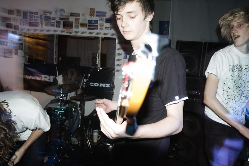 Christchurch eletro-pop troop that burst onto the All-Ages scene with the super-fun home-recorded MySpace single (‘Nikee’) and then a flurry of live shows, including achieving success as a wildcard entry in the Smoke-Free Rock-Quest regional finals. An exciting mix of electronics, guitar and pulsating rhythm, Bang! Bang! Eche! are Charlie Ryder (guitar), James Sullivan (Drums), T’Nealle Worsley (Bass) and Zach Doney (Vocals / Effects).