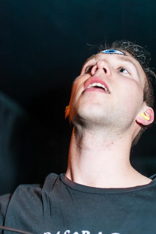 During a chaotic, problematic turn at Southern Amp 2007, James usually Synth-Drum setup failed to function so he quickly moved to the staged (but unamplified!) drum-kit – which went off a treat and since the synth drums have been completely phased out.